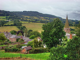 | hrad Grosmont - uprostřed hradní budova, vpravo zbytky věže |