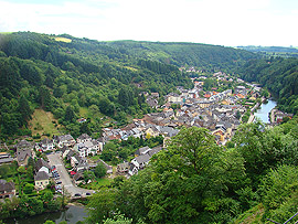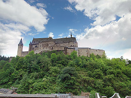 Vianden je vedle Luxembourgu nejdůležitějším turistickým místem Lucemburska. Dominantou městečka s 1600 obyvateli je totiž středověký hrad, který se tyčí na skalním ostrohu nad malebnou říčkou Our. Nejstarší části hradu pocházejí z 11.století a stojí na místě původní mnohem starší římské pevnosti. Ve 12.století byl hrad sídlem hraběcího rodu Viandenů, kteří o svou rezidenci přišli v roce 1264 v dědickém sporu s Lucemburgy. Ti zde poté sídlili až do roku 1417 a pro nás Čechy není bez zajímavosti, že se právě ve Viandenu 10.srpna 1296 narodil český král Jan Lucemburský! V roce 1417 hrad připadl dynastii Nassau, která jej však již jako rezidenci nevyužívala. V roce 1820 hrad prodal král William I. místnímu obchodníku, který většinu hradního invetáře rozprodal. To co zbylo postupně chátralo a teprve když bylo vlastnictví hradu převedeno na vládnoucí lucemburskou Velkovévodskou rodinu, byla zahájena dloudobá nákladná rekonstrukce. Bohužel jak se mohou návštěvníci hradu přesvědčit, probíhá tato rekonstrukce místy dost necitlivě, nicméně hrad je znovu po dlouhé době nepřehlédnutelnou malebnou dominantou údolí řeky Our. Vstupné do hradu dnes činí 5,5 Euro.