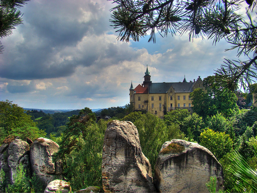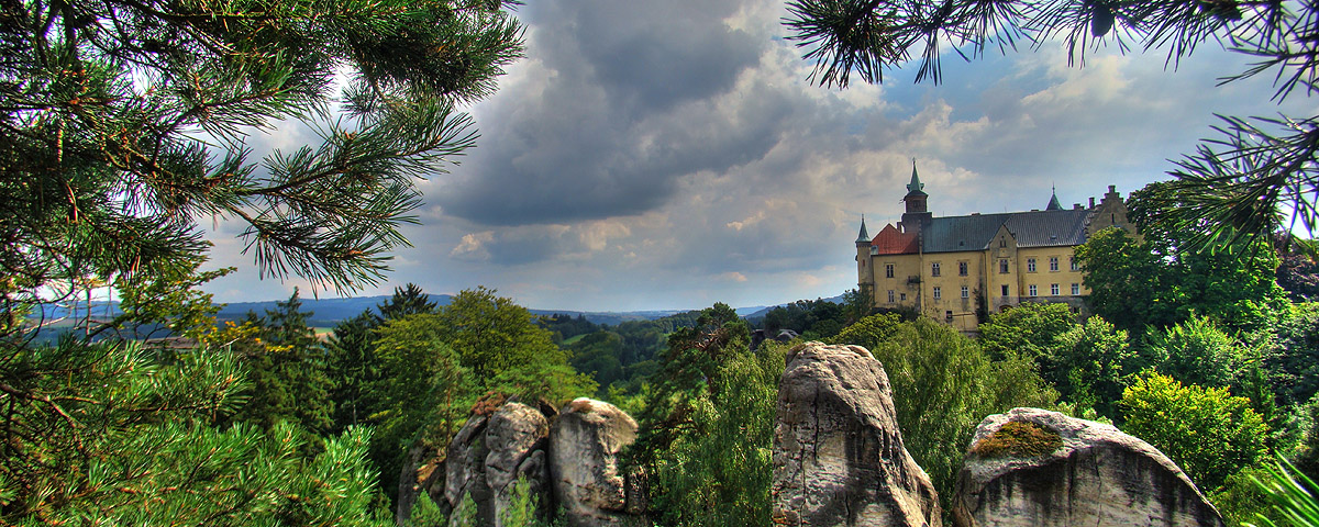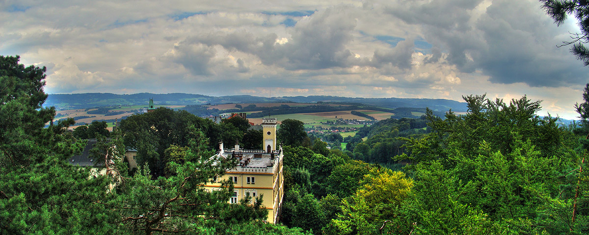 výhled z prachovny nad zámkem Hrubá Skála |