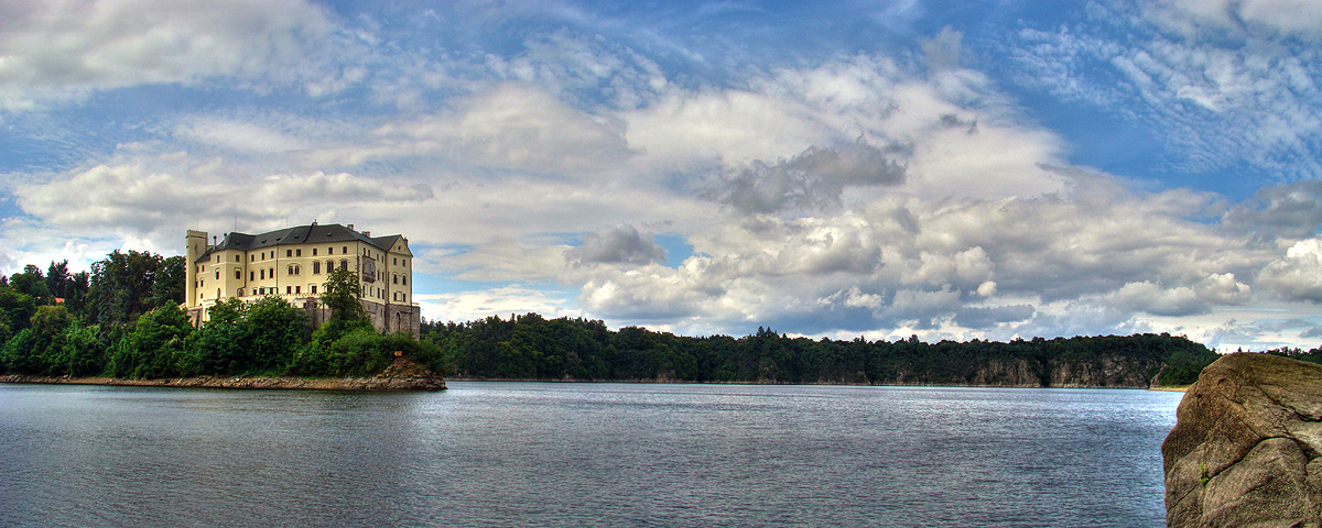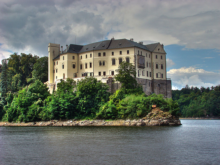 Orlík severovýchodní strana zámku Orlík nad Vltavou výhled na Orlík z protilehlého břehu
