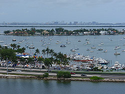 výhled na Miami downtown z Dodge Island |