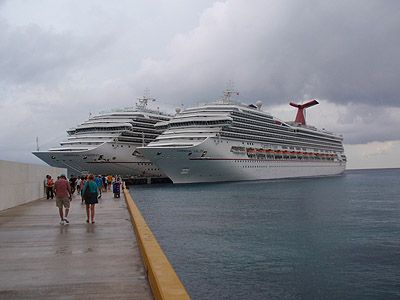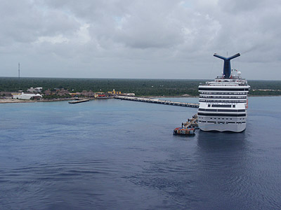 V přístavu asi 4km jižně od správního střediska San Miguel kotvíme u betonového mola po boku lodí společnosti Royal Caribbean.