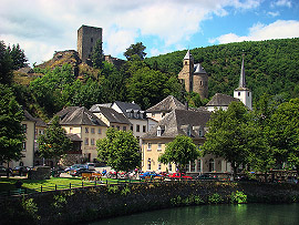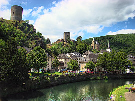 Vesnička Esch sur Süre, ve které žije celkem 240 obyvatel, leží v severovýchodní části Lucemburska na jižním okraji Arden. Řeka Sauer (francouzsky Süre), na jejímž břehu najdeme jen několik desítek baráčků, tu obtéká skalní ostroh, jehož dominantou jsou ruiny hradu založeného již v roce 927. Z hradu se do dnešní doby dochovaly především dvě věže z 15.století - jedna čtverhranná stojící přímo v hradním areálu a jedna kruhová, která se nachází na sousedním pahorku. Dále tu najdeme také zbytky kamenného opevnění (14.století) včetně jednoduché brány (15.století) a základy jednotlivých budov. Součástí hradního areálu je také pěkný kamenný kostelík. Z hradu je hezký výhled na celou vesnici i řeku, ktará ji obtéká. Díky svému malebnému vzhledu je Esch sur Süre označována za jednu z nejhezčích vesnic v Evropě.