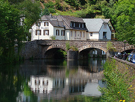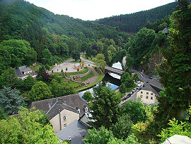 Esch sur Süre Esch sur Süre - městečko a hrad baráčky na břehu řeky Süre